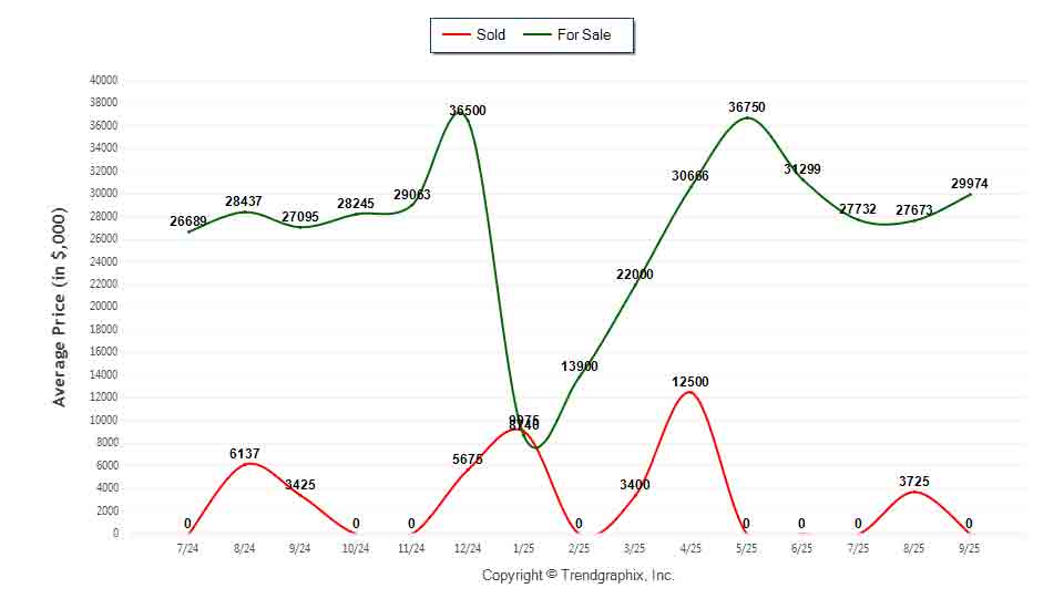 The Average Sold Price in September was $0,000, down 100% from $3,425,000 in September of 2024 and down 100% from $3,725,000 last month.