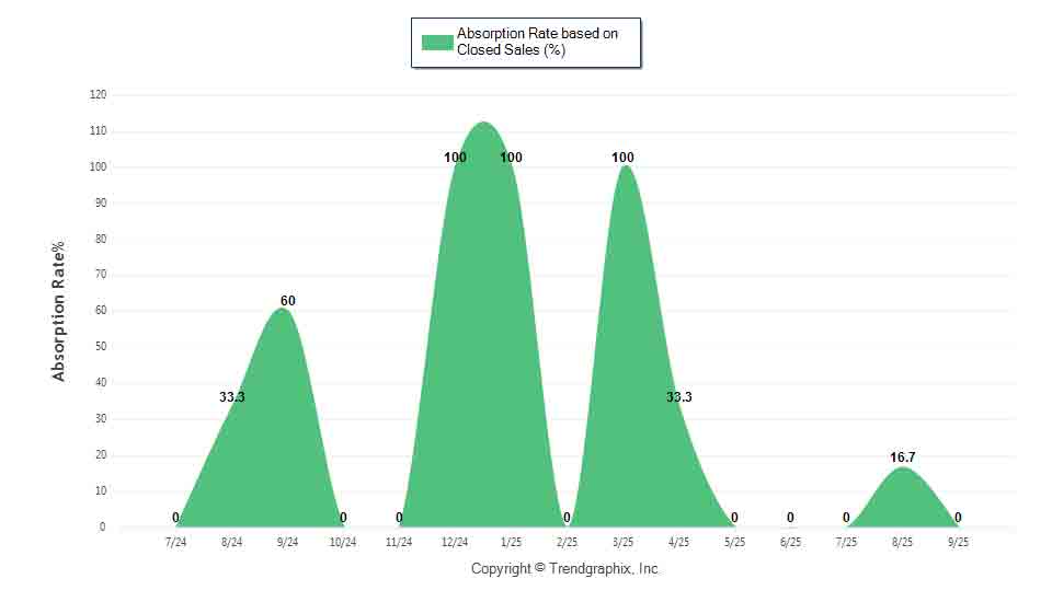 The September 2025 Absorption Rate based on Closed Sales of 0 was decreased by 100% compared to last year and down 100.2% compared to last month.